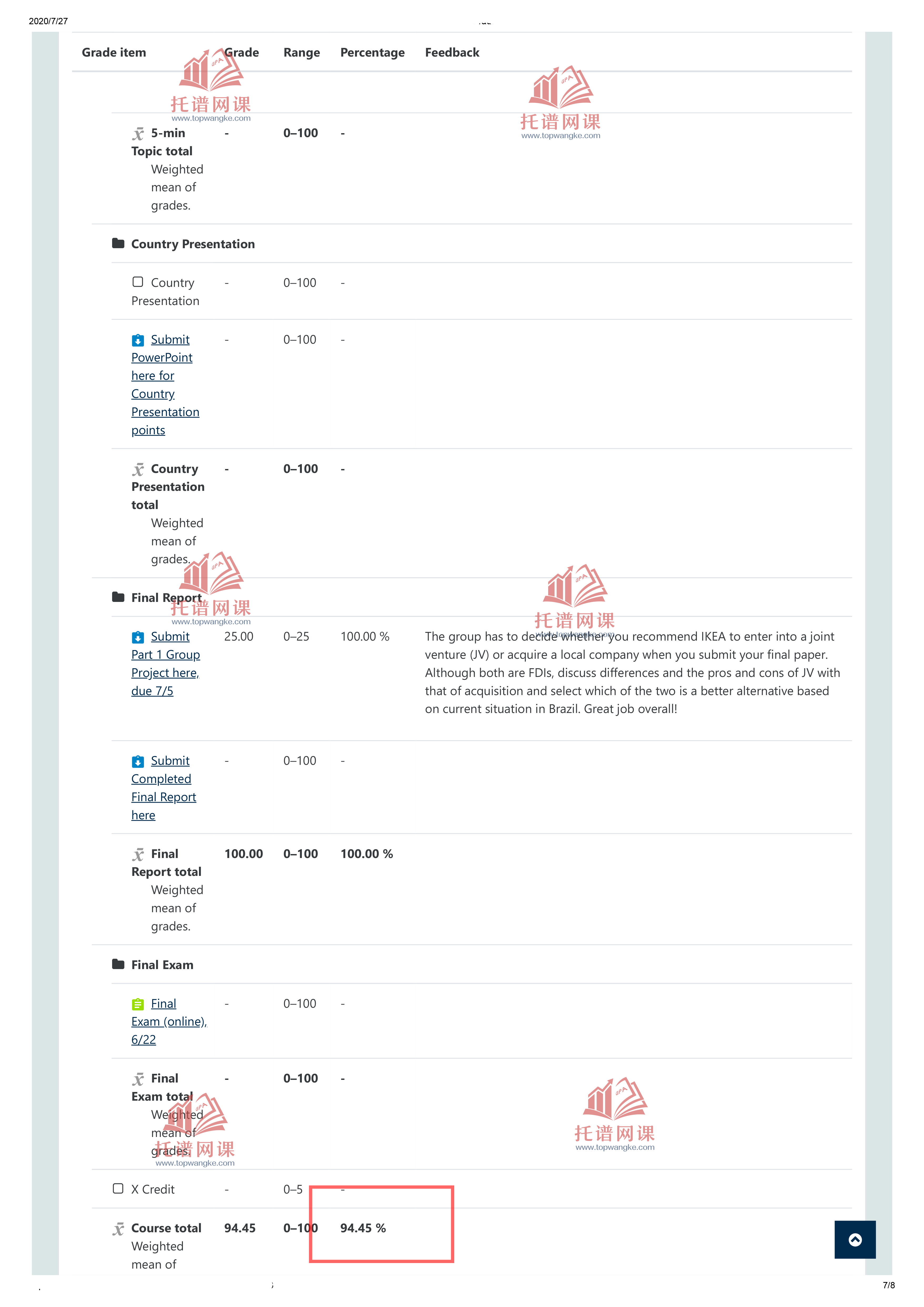 代上网课成绩单BUS331-92